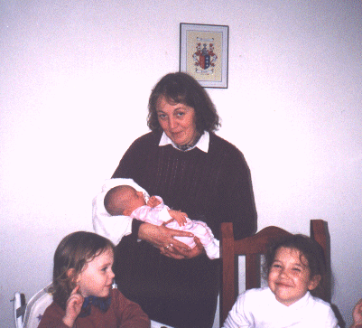 la abuela materna, sosteniendo a July, junto a Daniela y Micaela. |