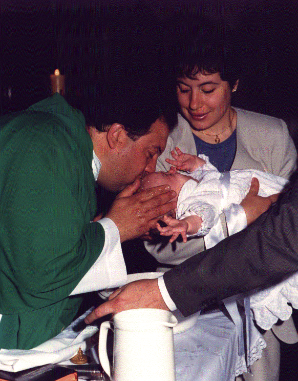 la ceremonia de bautismo, con un cura que .... bue! |