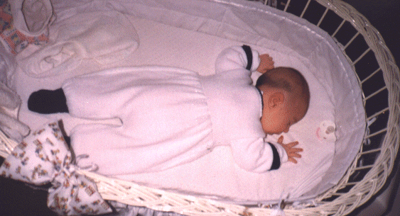 descansando en su moisés, al poco tiempo de nacer la pelamos, tenía un