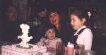 soplando las velitas con la madrina y la prima Micaela |