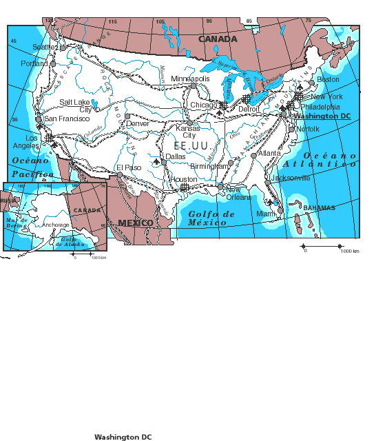 Otras Ciudades: Nueva York, 7.333.300 hab.; Los Angeles, 3.448.600 hab.; Chicago, 2.731.700 hab. ; Houston, 1.702.100 hab.; Filadelfia, 1.524.200 hab. (1994).